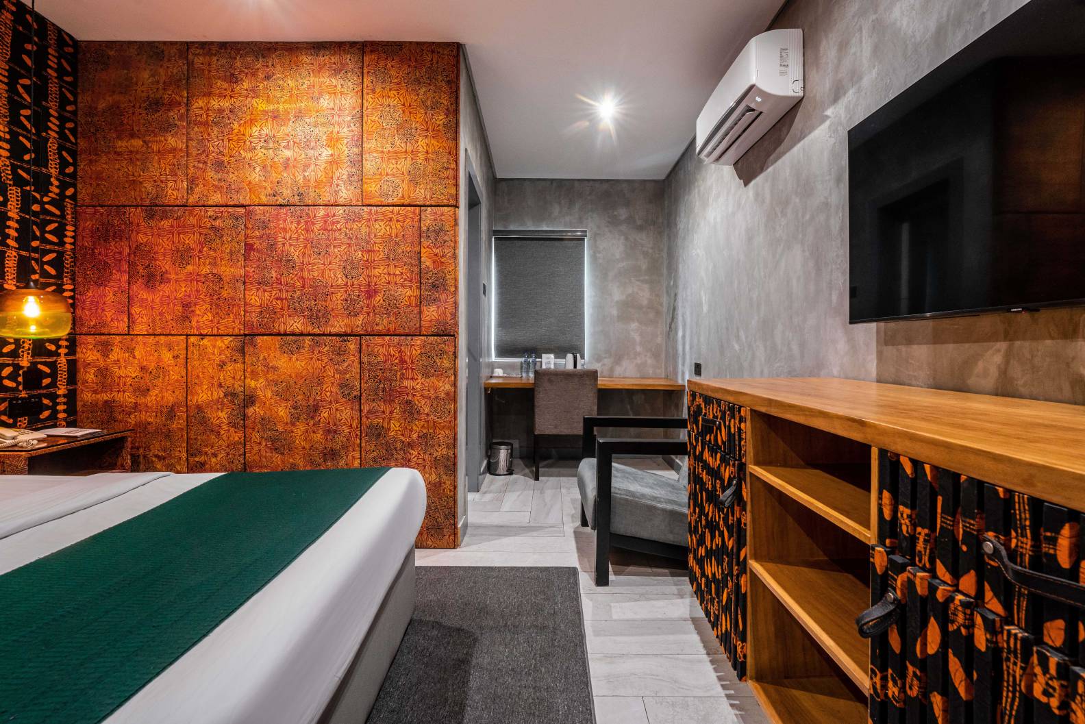 This re-imagined room blends warm textures, handcrafted details, and a vibrant African-inspired wall design to create a truly unique stay. Designed for travelers who appreciate thoughtful design and cozy functionality, the Afrocentric Haven features a queen-sized bed, ambient lighting, and a calming palette to help you unwind.